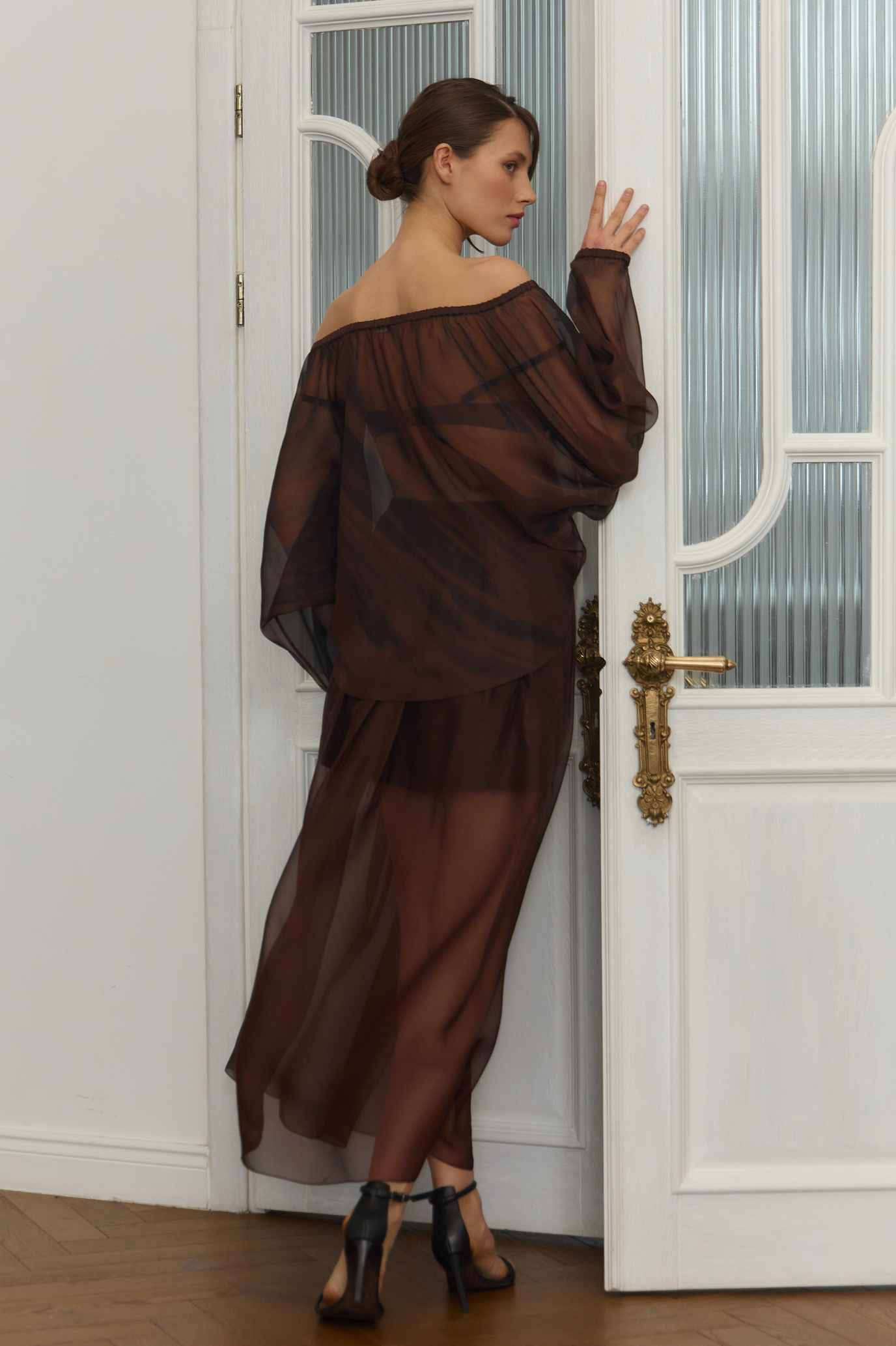 Описание Шелковая прозрачная блузка свободного кроя Натуральный шелк - шифон Ручная роспись Единый размер 42-58
