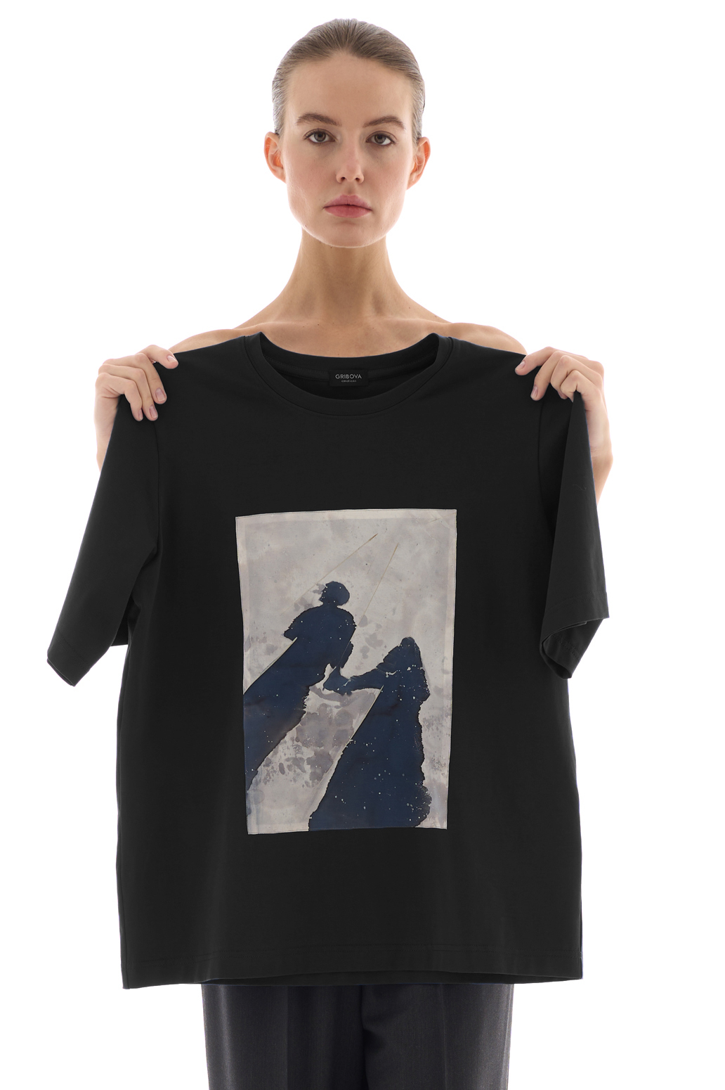 Женская футболка с рисунком ручной росписи на натуральном шелке