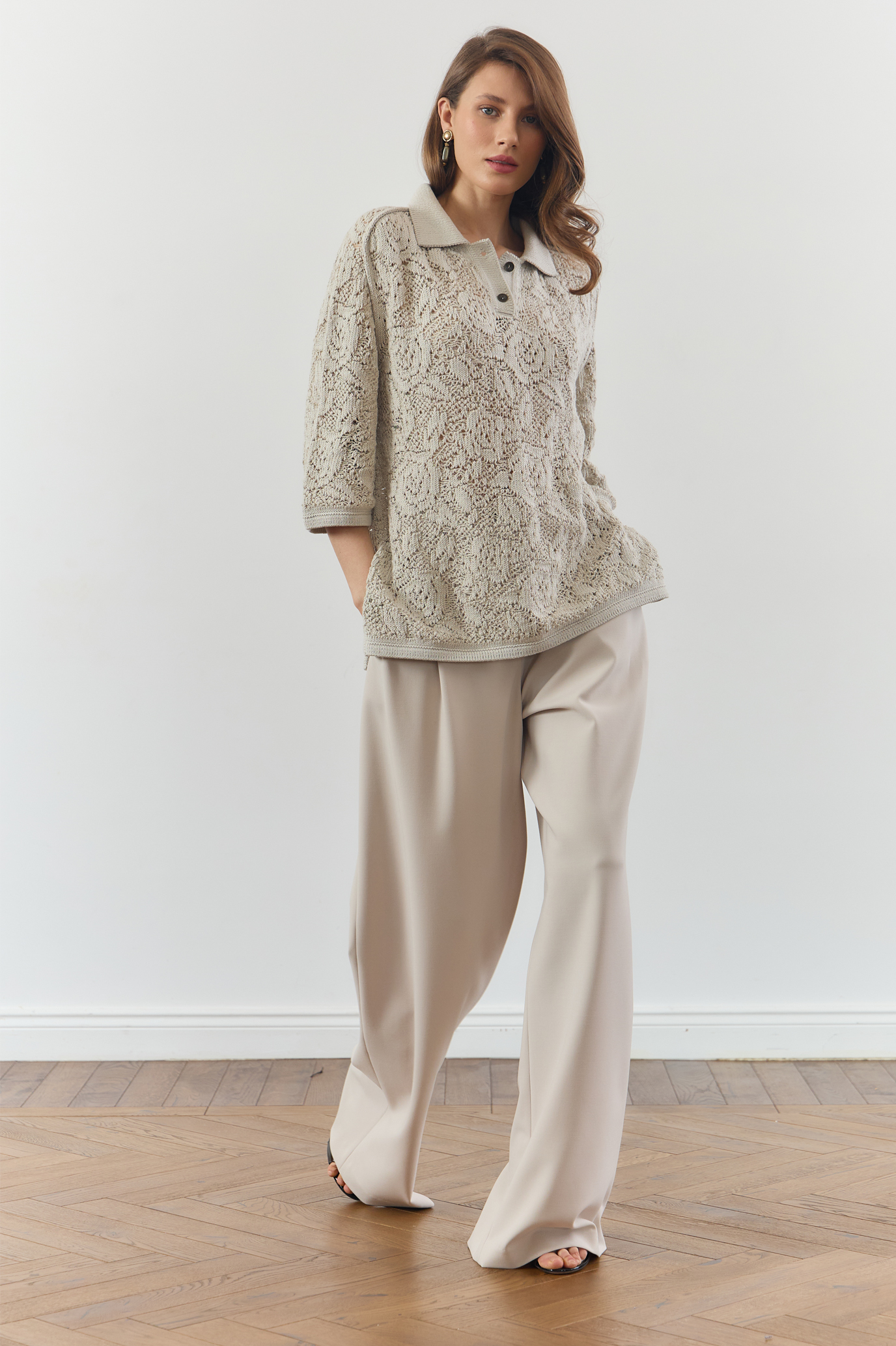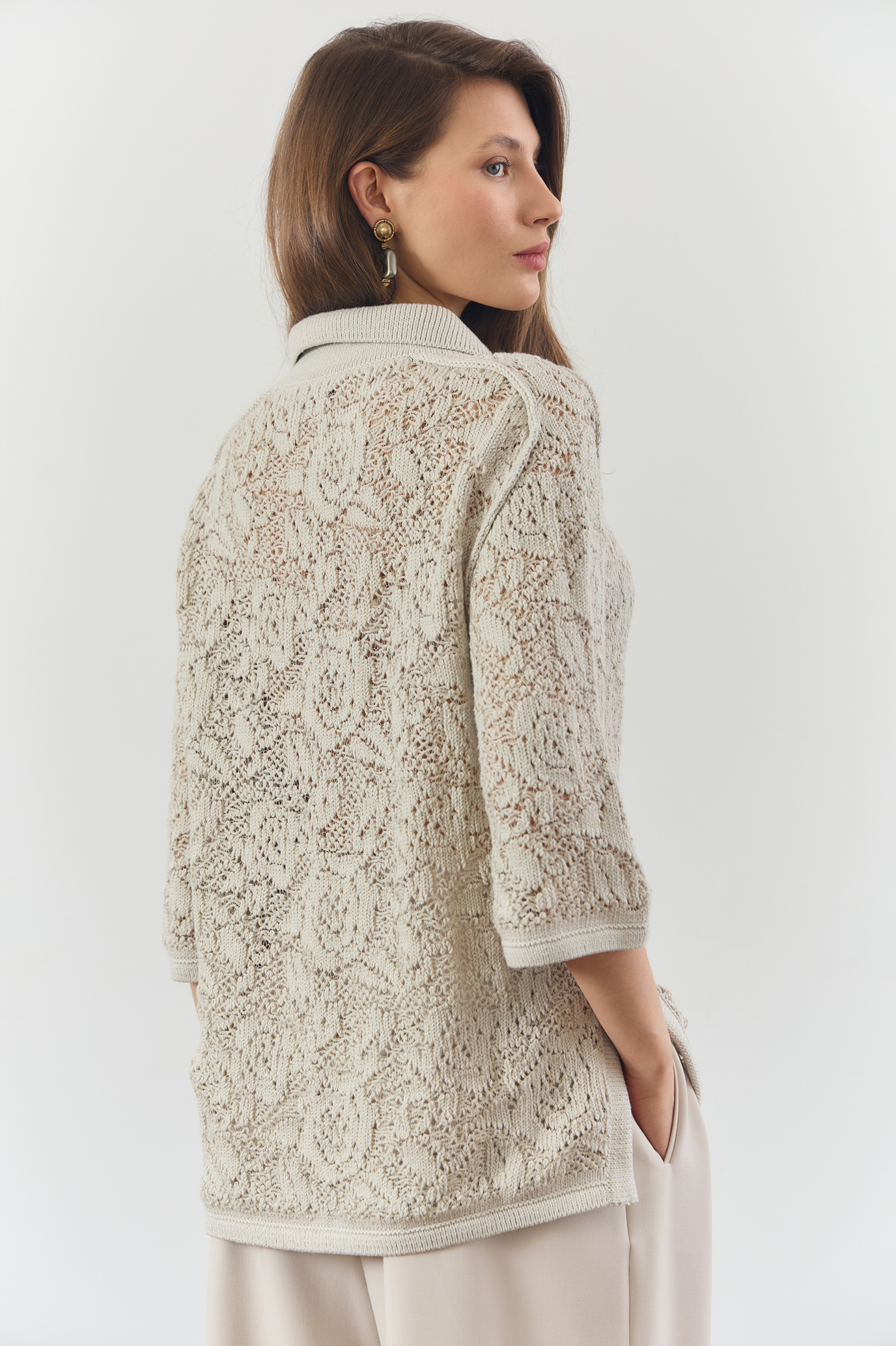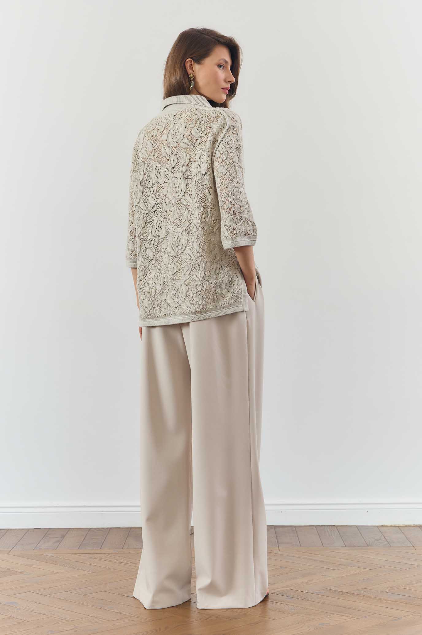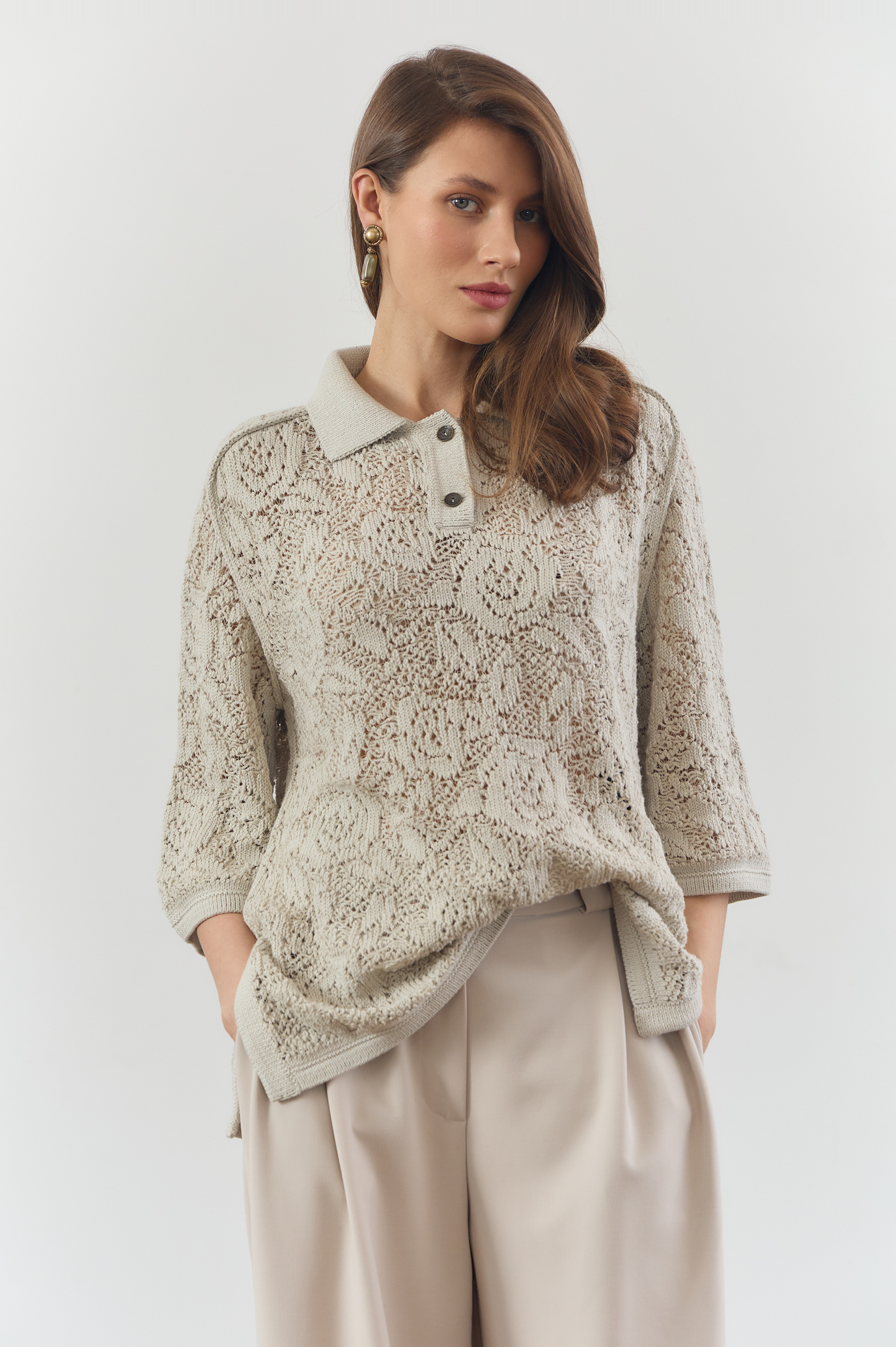 Вязаное поло свободного кроя из натурального хлопка оттенка Ivory