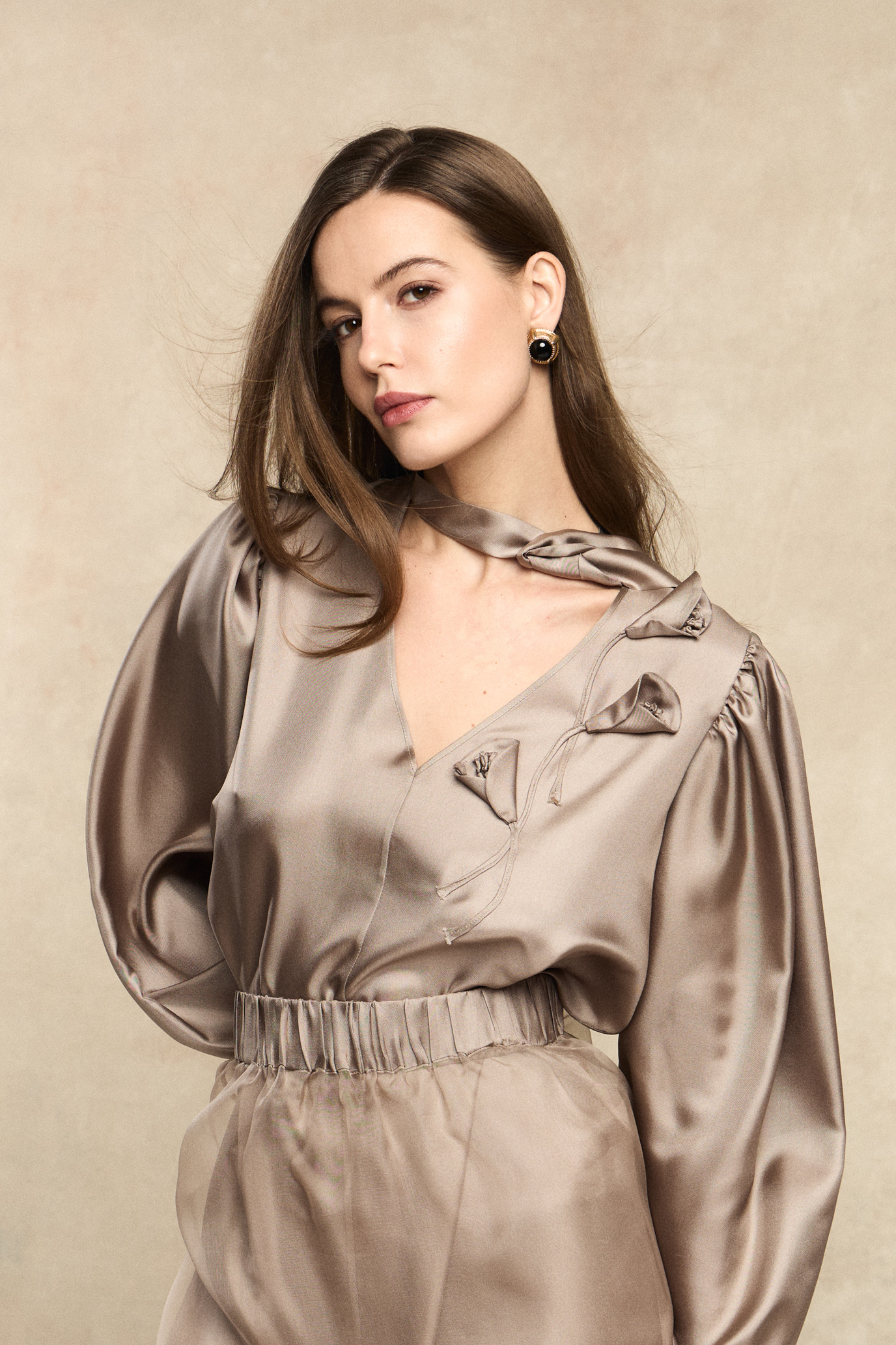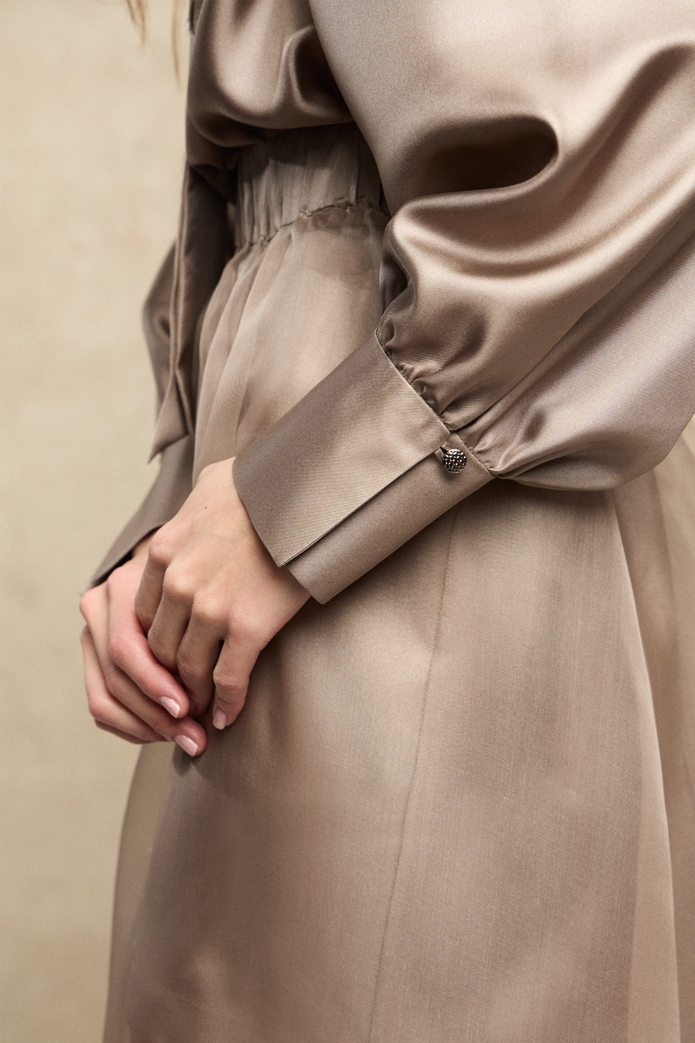 Платье из натурального шелка с юбкой из шелковой прозрачной органзы