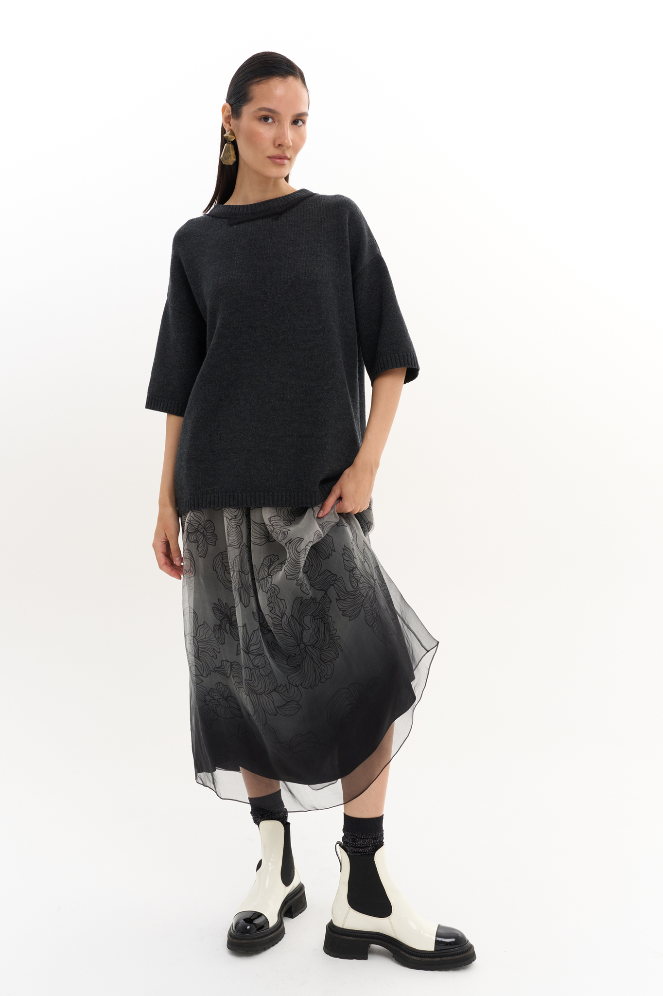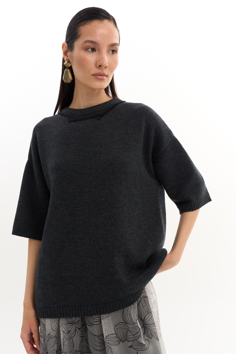 Вязаная футболка свободного кроя из натуральной шерсти - гребенной меринос