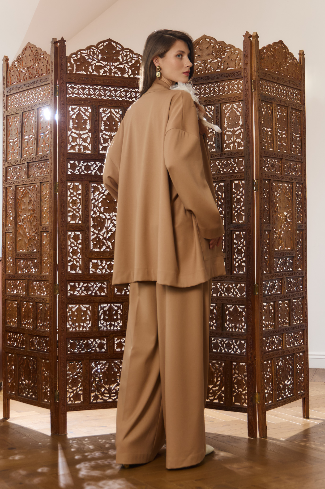 Жакет - кимоно свободного кроя песочного оттенка с декором ручной работы