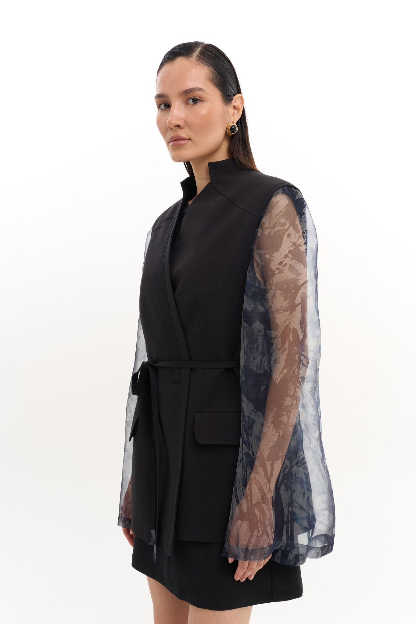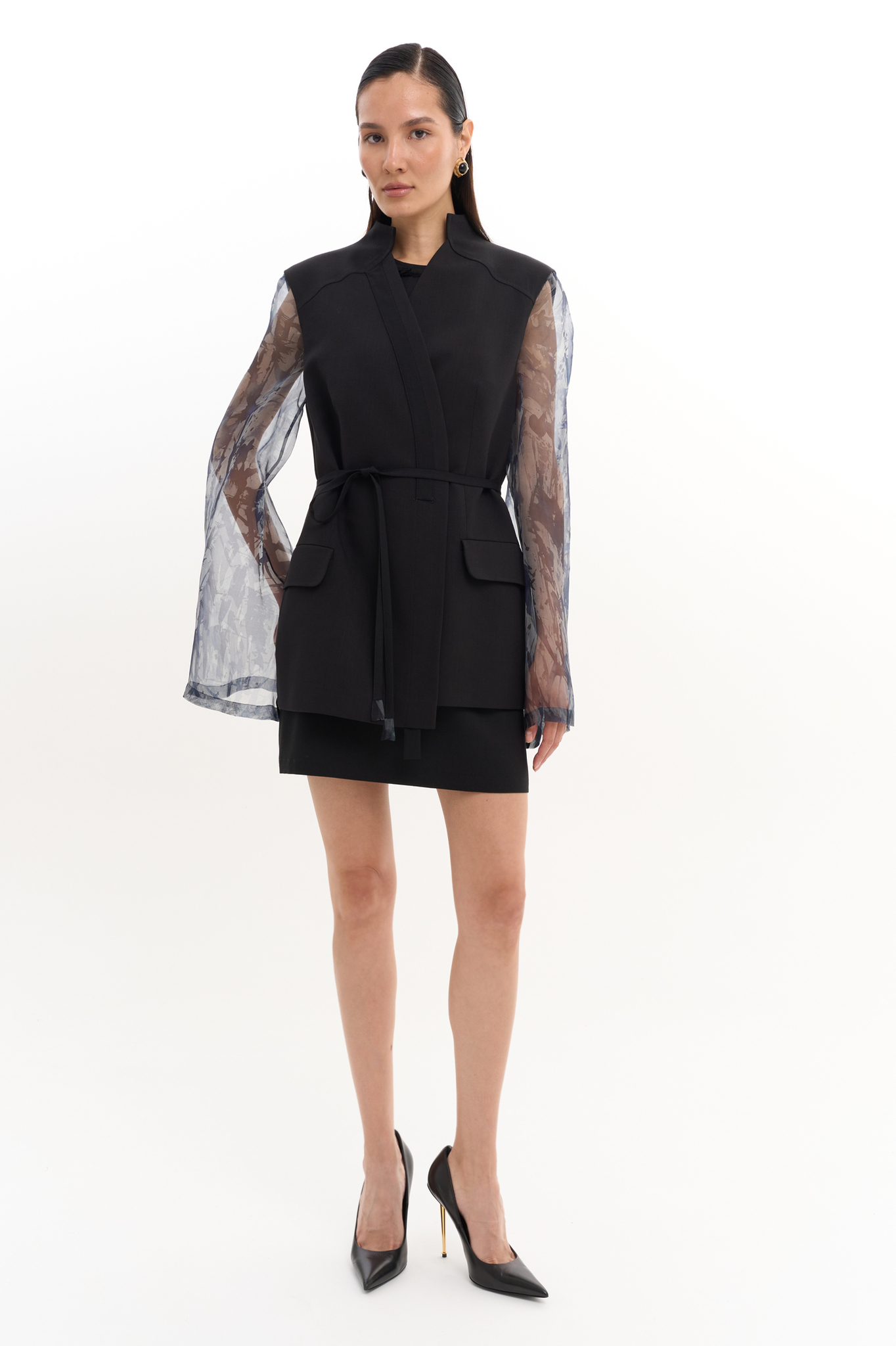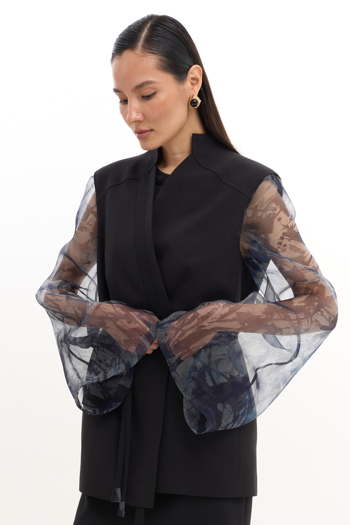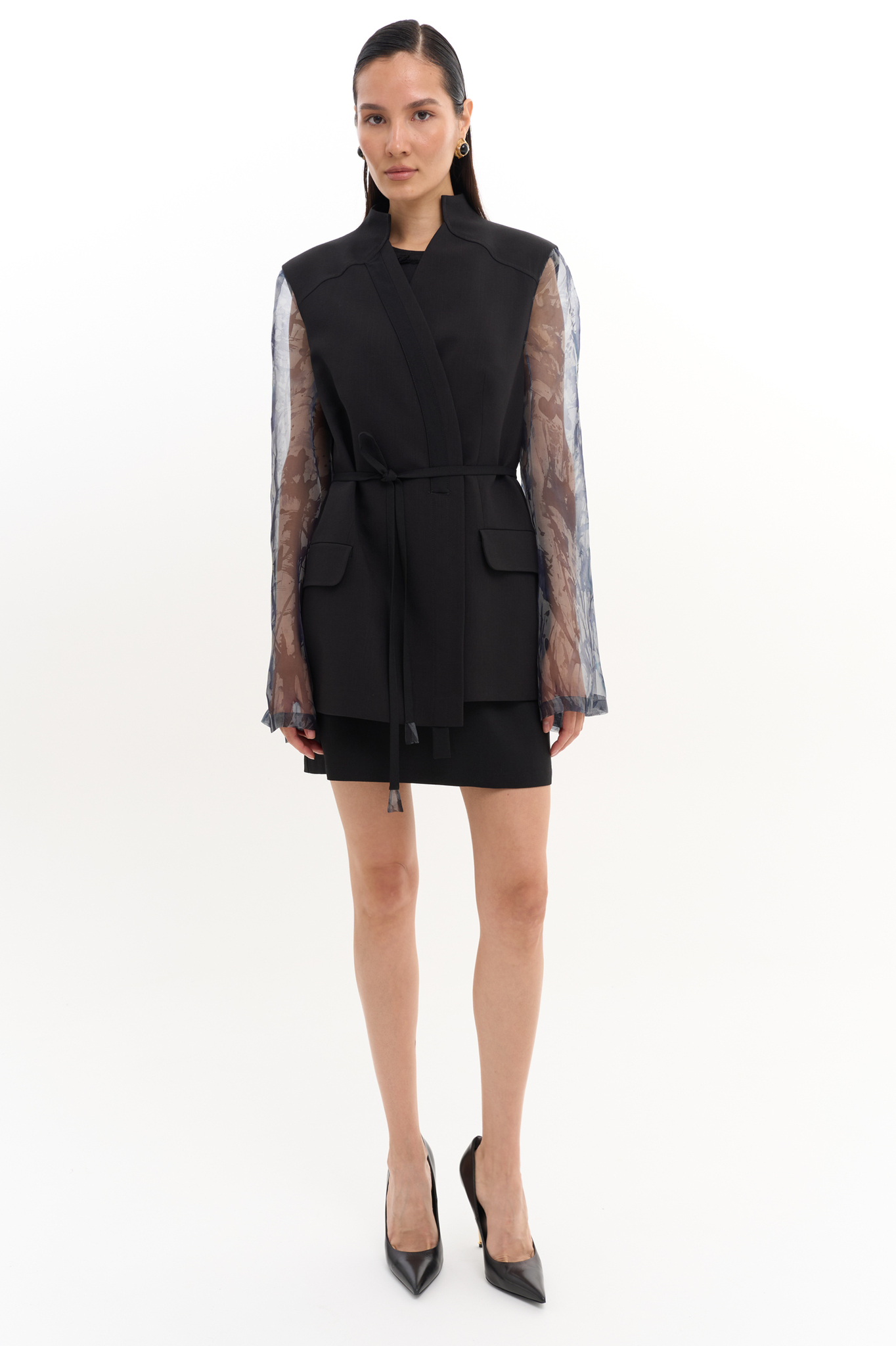 Женский жакет с рукавами из натурального шелка ручной росписи